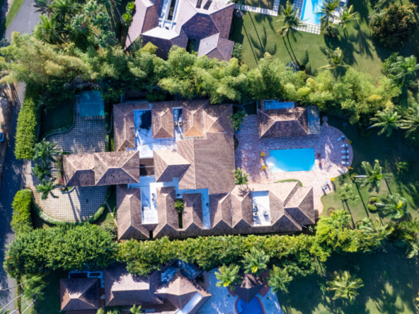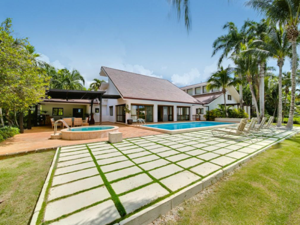 con aire acondicionado y televisión en 3 de ellas, 5 ½ baños, terraza grande en el segundo nivel, sala y comedor muy amplias y frescos con puertas que comunican al área de la piscina y proporcionan mucha claridad jardín muy bonito con jacuzzi, gazebo y piscina. Incluye una camarera de limpieza y un jardinero.